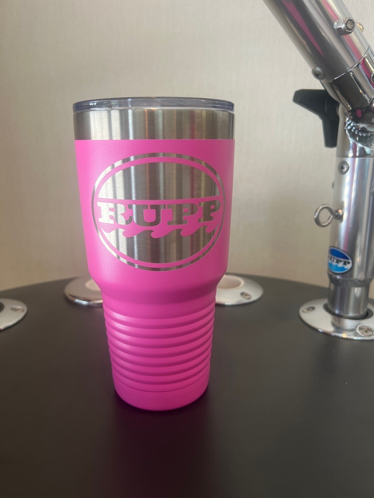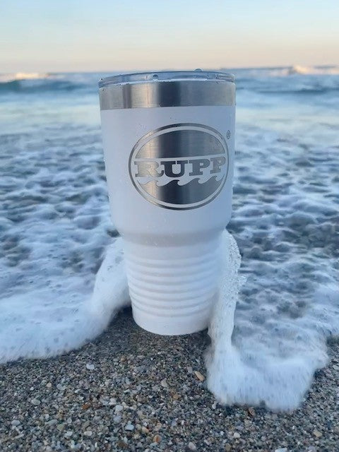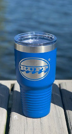 30oz Polar tumbler with lid, laser etched with Rupp logo. Available in various colors, double walled insulation for hot or cold beverages. Fits any standard size cup holder, perfect for boat, car or beach!
